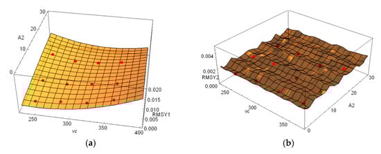 The response surfaces, and measurement points used to derive vibration measurement data for each sensor are shown in Figure 13. The obtained surfaces and three-dimensional graphs show how the machining parameters impact vibration amplitude levels.