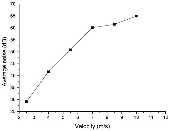 The experimental results show that the noise value increases with the velocity increases. There is a difference between the simulated and the experimentally measured noise value; however, the overall trend of change is basically the same, which also verifies the correctness of the simulation model.