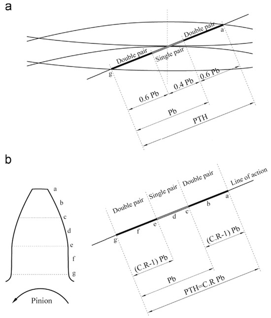 Points of single and double tooth engagement on (a) Line of action (b) Gear tooth [36].