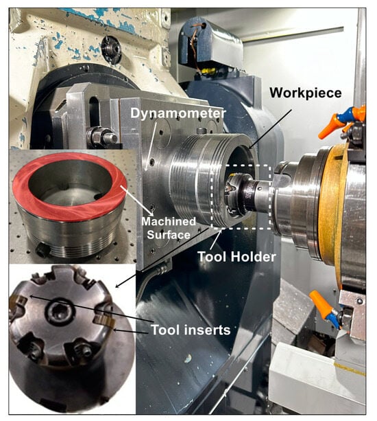 Super duplex stainless steel is prone to work hardening during machining, especially at high speeds and feeds [3,8]. As the material undergoes plastic deformation, it becomes harder and more resistant to further machining, requiring higher cutting forces to remove material effectively. This plastic deformation leads to the accumulation of dislocations and increases the material’s strength, making the material more difficult to machine and contributing to higher cutting forces and tool wear [9,10].