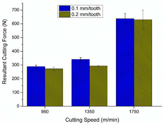 To examine the variation trend of cutting forces, the resultant cutting force was chosen. The evolution of resultant cutting forces with tested cutting parameters is illustrated in Figure 3.