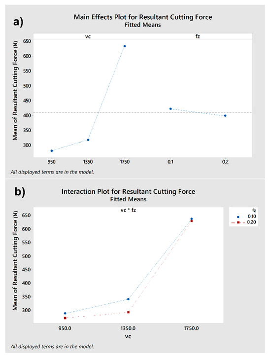 The resultant cutting forces plots for (a) main effects and (b) interaction.