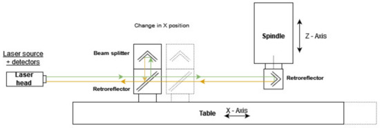 One way to maintain and improve performance is to make mechanical adjustments or software error compensation. This process is known as machine tool calibration [2]. The basic point of machine tool calibration is the measurement and compensation of positioning errors. To measure these errors directly, they are usually measured with a laser interferometer aligned with the measured axis. Calibrated artefacts are also used for these measurements [3]. Several commercial instruments have been successfully developed for measuring geometric errors of linear axes. A very commonly used laser interferometer is XL-80 (Renishaw, Wotton-under-Edge, UK). The software from XL-80 then calculates and plots graphs of positioning errors depending on the position of the measured axis according to, for example, ISO 230-2 [4]. However, these devices can only measure a single geometric error, depending on the settings of the optical components. The principle of setup and measurement is described by Zhang [5].