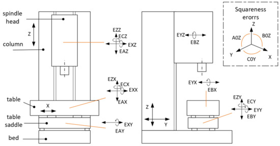 - Okafor, A.C.; Ertekin, Y.M. Derivation of Machine Tool Error Models and Error Compensation Procedure for Three Axes Vertical Machining Center Using Rigid Body Kinematics. Int. J. Mach. Tools Manuf. 2000, 40, 1199–1213. [Google Scholar] [CrossRef]