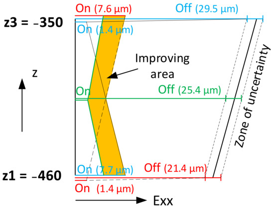 Figure 18 shows the Exx error at the z1 position, where the variance of the resulting Exx,z1 error ranges from −6.1 to 23.8 µm.