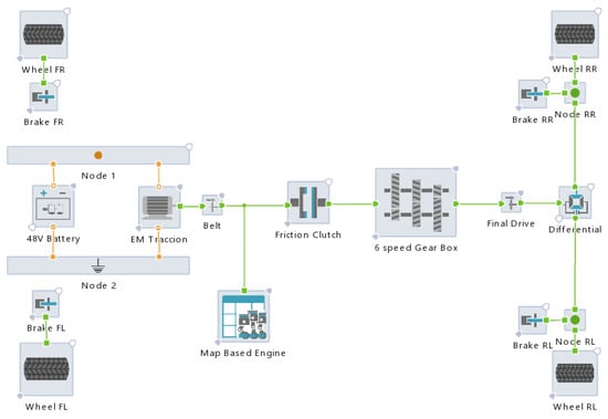 Figure 4. MHEV concept layout in the simulation graphic user interface of AVL Cruise M.