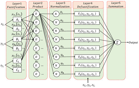 The proposed structure of the ANFIS system is as follows (see Figure 3):