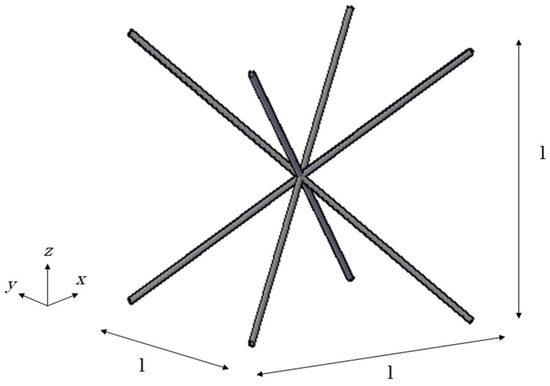 Figure 1. The unit cell consists of four micro-struts crossing each other at their middle span. The configuration of the BCC unit cell is typical of strut-based lattice structures. The size of the BCC unit cell is 2.5 mm and it is fabricated by Ti-6Al-4V on a steel substrate.