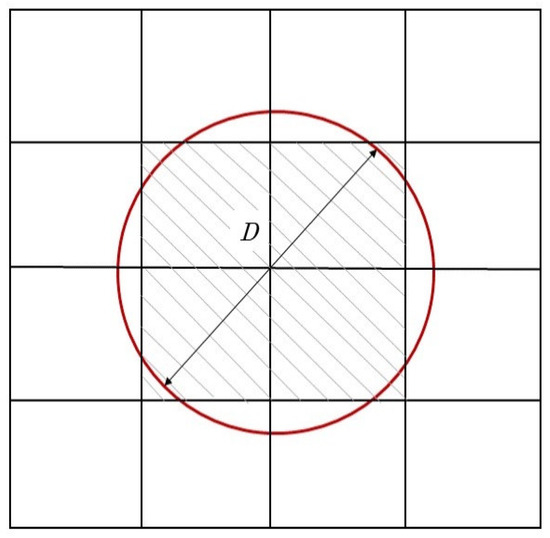 is the laser energy absorptance of processed material. Due to the cuboid FE discretization of the powder bed, the circular laser spot cannot fully cover the surface of each element. Therefore, it is assumed that an element receives heat if more than half of its surface is covered by the laser spot, as it is depicted in