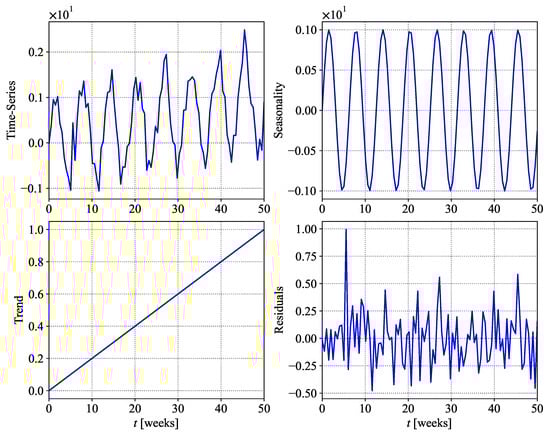 A sample of time-series data illustrating trend, seasonality, and residuals. Data from [132].
