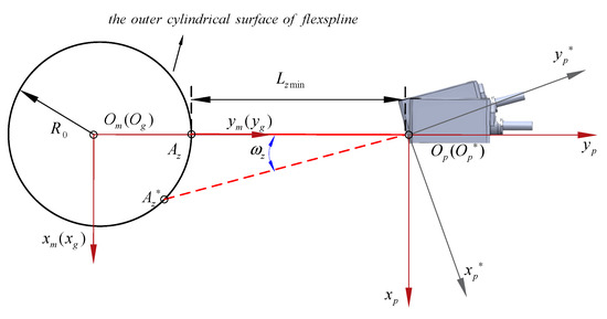 where is the coordinate transformation matrix that converts the flexspline tooth information from the machine coordinate system to the gear coordinate system, is the measured value of the sensor at a defined position, and is the nominal distance of the sensor. H is the Y coordinate value of the measured point in the machine coordinate system.