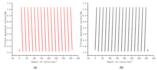 Virtual measurement data of sensors. (a) Virtual measurement data for the left teeth flanks. (b) Virtual measurement data for the right teeth flanks.