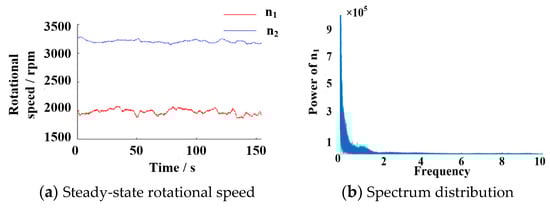 The statistical analysis of multiple sets of real vehicle road spectrum data is carried out to obtain the dynamic change law of engine rotational speed under typical working conditions, which is divided into steady state and dynamic state. The input and output rotational speed running-in curves are shown in Figure 3.