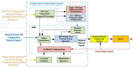 The closed loop controller of temperature consists of five parts: integrated treatment of the temperature of oil and water, temperature control model, constraint conditions, optimization objectives, and MPC.