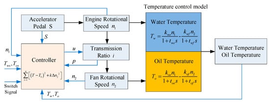 There are two actual objectives of HSCS: water temperature and oil temperature, which have different desired values and working conditions. In order to reduce the control dimension and computational complexity, the oil–water temperature Two is used to identify the water temperature Tw and oil temperature To in this control method, which can be expressed as follows: