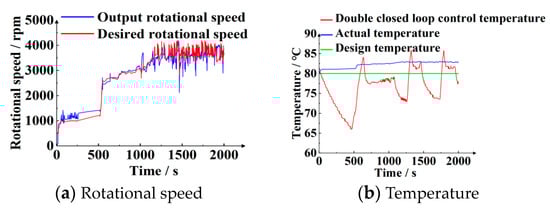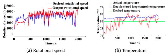 The simulation results of double closed loop control of temperature and rotational speed under real vehicle condition 2 are shown in Figure 28.
