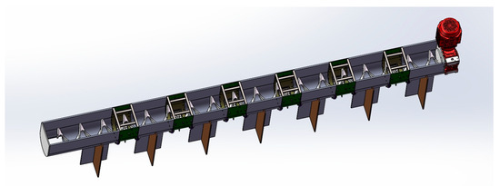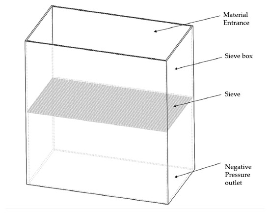 23]. In order to improve screening efficiency, researchers have proposed the concept of “negative pressure suction”. The 3D model of a negative pressure vibrating screen is shown in