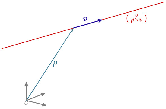 Illustration of a line vector by Plücker coordinates. represents a point in the line, gives the direction of the line and is the line in Plücker coordinates.
