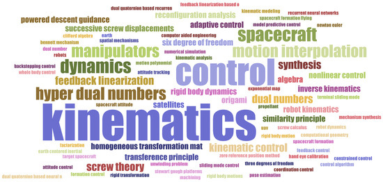 - Valverde, A.; Tsiotras, P. Dual Quaternion Framework for Modeling of Spacecraft-Mounted Multibody Robotic Systems. Front. Robot. AI 2018, 5, 128. [Google Scholar] [CrossRef]