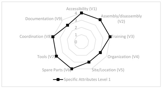 This five-value scale allows assigning a score to specific maintainability attributes based on the maintenance level they are related to (0 to 4). Higher values on the scale indicate better performance or greater ease in fulfilling that attribute at that specific level of maintenance, while lower values indicate the opposite. The use of this grading scale facilitates obtaining a quantitative and objective evaluation of the device’s maintainability at each of the considered maintenance levels. This provides a detailed view of how maintainability behaves in different situations and levels of intervention.