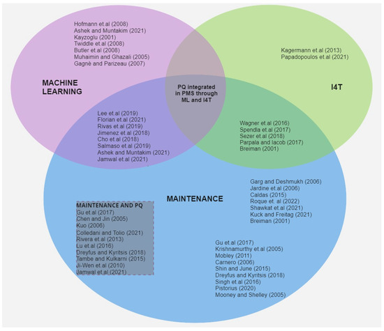 This analysis highlights the gap between the use of maintenance data through ML and the real-time control of product quality through a single framework; furthermore, appropriate PdM strategy approaches may be finalized to improve at the same time the efficiency and reliability of the manufacturing system and the PQ. These approaches should relate certain PQ features to the maintenance status of the machine and, through data collection and monitoring with I4T, dynamically define the appropriate PdM strategy.