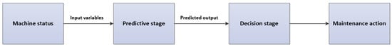 Step 2 concerns the prediction analysis, where the FPY is estimated based on the input variables, and a decision stage and a decision phase, which suggest a maintenance action based on the output of the previous stage (Figure 6).