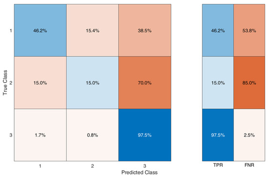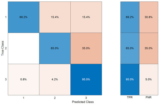 In this case, the FNR is high for classes 1 and 2 (representing, respectively, FPY = 2 and FPY = 1). This indicates that the naive Bayes classifier should not predict the correct output when the input variables should suggest an FPY index in these two classes.