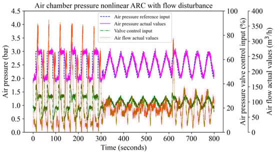 Control performance of nonlinear ARC step response for air chamber pressure regulation in experiment.