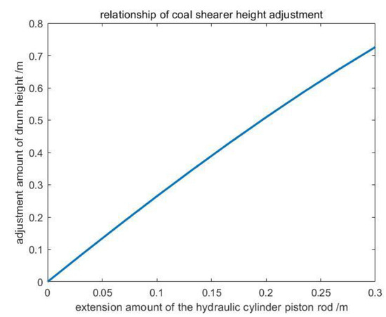 The height adjustment mechanism of a coal mining machine can be simplified as shown in Figure 4. The expression for the adjustment amount of the drum can be derived as follows: