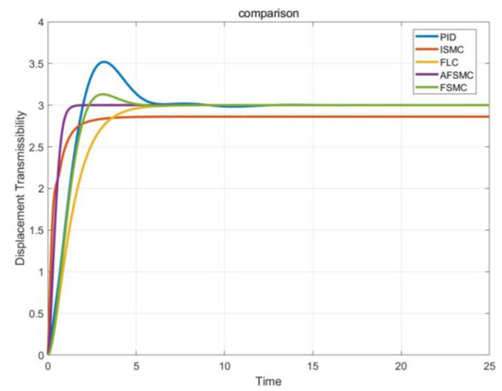In order to verify the effectiveness of adaptive fuzzy sliding mode controller (AFSMC) proposed in the article, four commonly used control methods [20], including PID, ISMC, FLC, and FSMC controllers, are employed for performance comparison by simulation experiment in Matlab. The mathematical model of the shearer for experiment is derived from the above-mentioned digital twin model. The simulation of the controllers were compared as shown in the Figure 8.