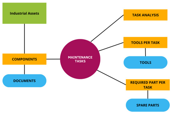 With the complete definition of all the data tables, a model focused on the maintenance tasks is structured, as illustrated in Figure 3, in which each table is connected to another through a relationship between them.