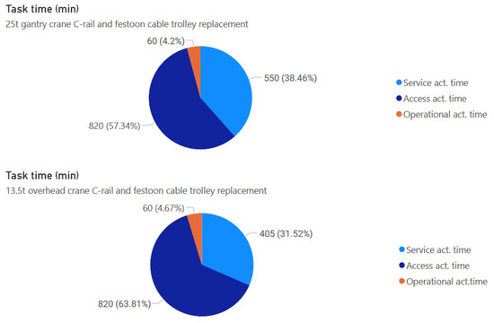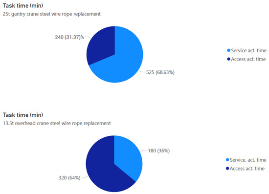 As can be seen in Figure 20, the overhead crane has an additional access component that should be considered when planning or optimizing the maintenance process. The path to reach the overhead crane’s components might be more complex, involving ladders, scaffolding, or other access equipment. Understanding these factors can help in planning more efficient maintenance processes and addressing the specific challenges associated with overhead crane access.