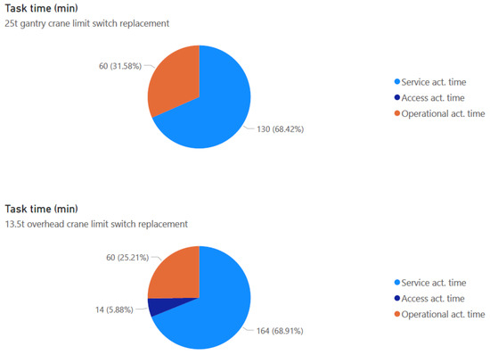 Since the initiation of the 20th century, great engineers and researchers such as Taylor, with his scientific management theory that simplifies tasks into basic elements; Fayol, who set his fourteen principles emphasizing specialized labor for greater efficiency; and Weber, with his bureaucratic theory for managing complex organizations most efficiently, continue to shape modern managerial thinking and organizational practices [28,29]. More recently, in the context of Lean and the Toyota Production System, the paper by Bowen and Spear [30] proposed four principles/rules that outline how Toyota sets up its operations as experiments under the principles of the scientific method. Notably, rule number one states that: “All work shall be highly specified as to content, sequence, timing, and outcome”. From this foundation, and drawing inspiration from the aforementioned principles, the maintenance task analysis (MTA) has emerged as a systematic process utilized in maintenance engineering and asset management [31]. Its goal is to ensure the operability and reliability of equipment throughout its lifecycle by identifying, analyzing, and documenting the necessary maintenance tasks [32]. It is crucial for creating efficient maintenance plans, optimizing resources, and reducing downtime [33]. The maintenance task analysis (MTA) involves identifying and documenting all the maintenance efforts, activities, and actions necessary to maintain, change, improve, or restore the functionality of an element under specific operating conditions [34]. Alternatively, it serves as a basis for maintainability prediction models by collecting maintenance task data [35]. Also, the MTA is conducted early in the asset design phase and should be reviewed as design changes occur [1].