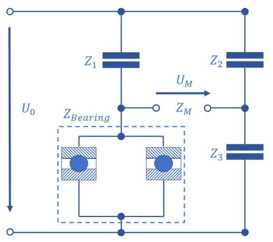 An alternating current measurement bridge is used to gauge the bearings’ impedance. Figure 7 shows the electric circuit.