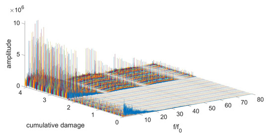By plotting the amplitudes and their corresponding order on the cumulative damage in a 3D plot, it was possible to recognize some patterns with regard to the damage, as displayed in Figure 18.