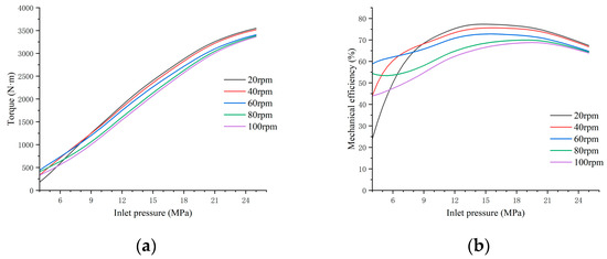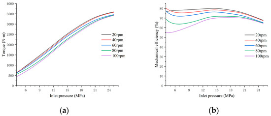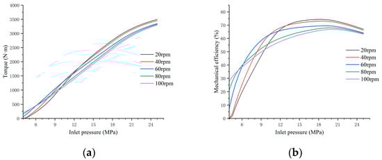 Outlet pressure: 0.3 MPa. (a) Torque Variation Diagram; (b) Mechanical Efficiency Variation Diagram.