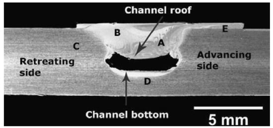 - Mehta, K.P.; Vilaça, P. A review on friction stir-based channeling. Crit. Rev. Solid State Mater. Sci. 2021, 47, 1–45. [Google Scholar] [CrossRef]