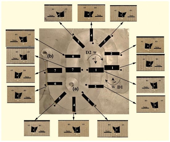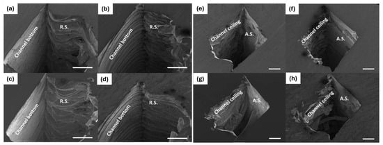 - Rashidi, A.; Mostafapour, A. Influence of machine parameters on material flow behavior during channeling in modified friction stir channeling. Int. J. Mater. Form. 2014, 9, 1–8. [Google Scholar] [CrossRef]