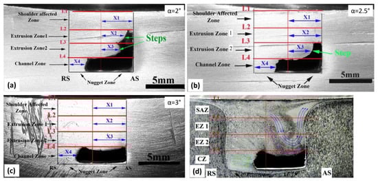 - Liu, F.; Nelson, T. In-situ material flow pattern around probe during friction stir welding of austenitic stainless steel. Mater. Des. 2016, 110, 354–364. [Google Scholar] [CrossRef]