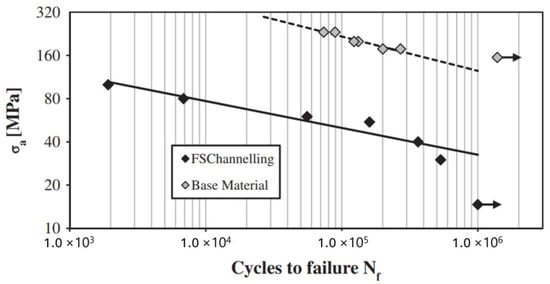 - Vidal, C.; Infante, V.; Vilaça, P. Fatigue assessment of friction stir channels. Int. J. Fatigue 2014, 62, 77–84. [Google Scholar] [CrossRef]