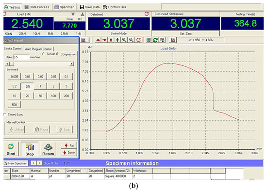 Force-deformation curves recorded using the device on the universal tensile testing machine when shearing aluminum alloy sheets: (a)—strip thickness t = 1 mm; (b)—strip thickness t = 1.5 mm.