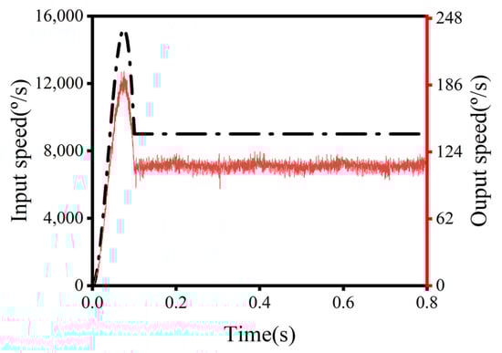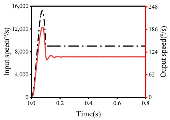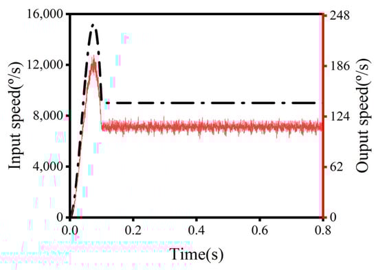 Because the mechanical system was not an absolute rigid body in engineering, the flexible modeling of the worn cycloid gear was generated, replacing the original rigid body. As shown in Figure 16, the input and output speeds are depicted.