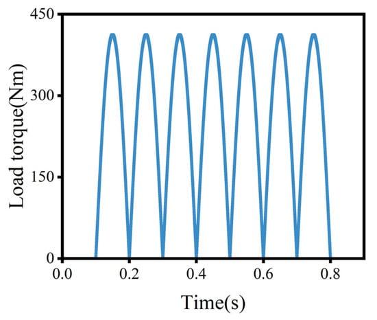 To simulate the working conditions more accurately, a sinusoidal load torque was applied to the model [], as shown in Figure 13.