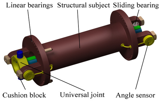 As shown in Figure 2, the single segment of the robot consists of a universal joint, an angle sensor, a structural subject, a cushion clock, and linear bearings. The segment is driven by a cable to move the universal joint.