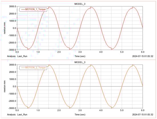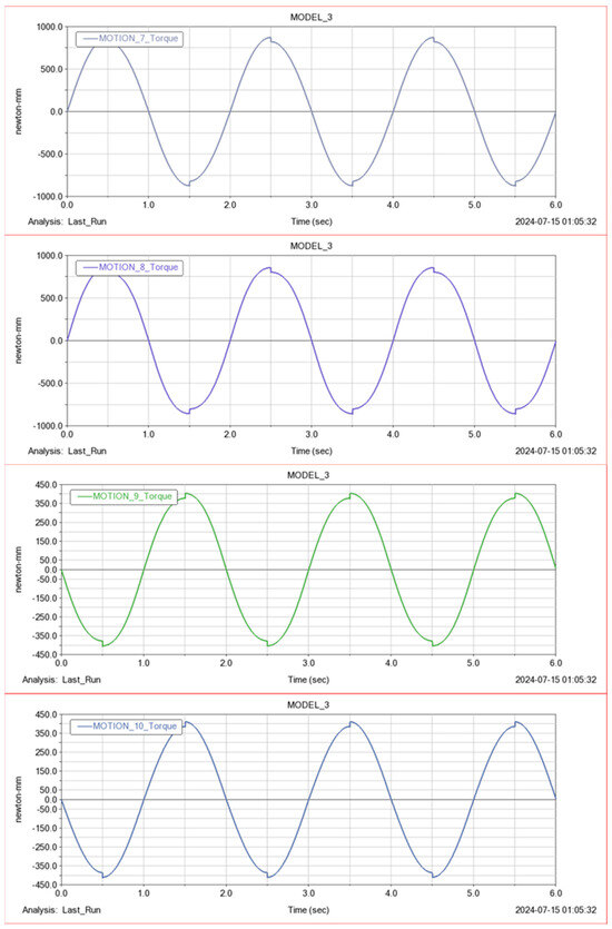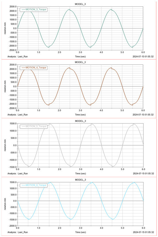 To verify this result, a simulation experiment is designed in the ADAMS environment. The driving function shown in Table 3 is added to the motor. A 6-s simulation is conducted. The simulation results are shown in Figure 10.