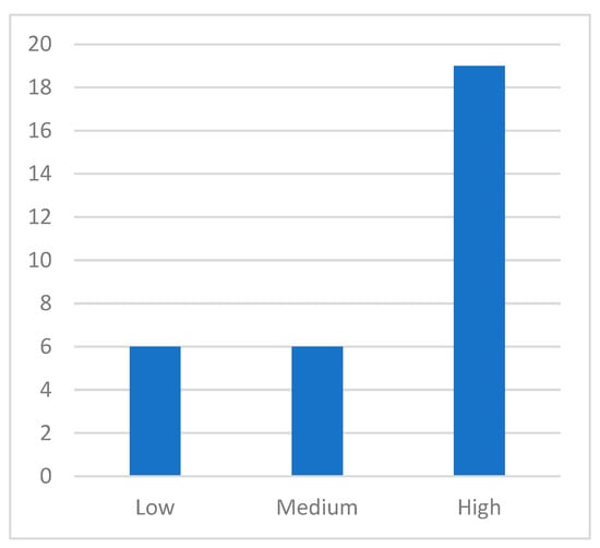 Figure 3 presents the classification of the selected papers according to the level of immersion defined by the combination of devices used in each case study. It is clear that most studies present high levels of immersion. This is important as the level of immersion may impact performance and the translation of knowledge and skills to the real world, particularly in tasks combining motor skills with complex decision making.