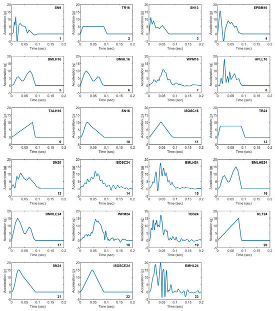 Figure 8 presents the plot for each criterion as they correspond to the responses of both seats to 23 different crash pulses given in