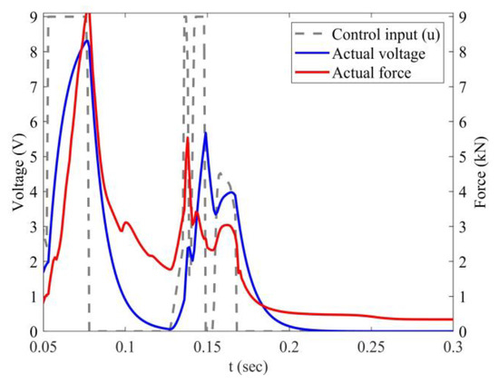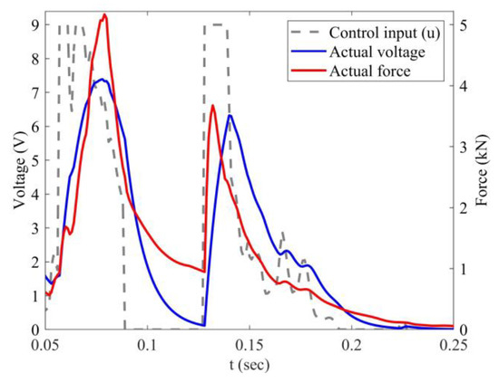 22], is the fixed damping characteristics of the control output. For proper shock mitigation, a correspondingly varying reaction force should be supplied by the damper, which necessitates the utilization of continuous feedback control on MR damper force output. Another cause might be the selection of the Bingham model, which is reportedly not satisfactory for a control design [