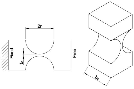 This research proposes an integration of right circular hinges into a new developed positioner to improve the stiffness and initial natural frequency of the stage. As illustrated in Figure 6, the key parameters of the utilized flexure hinge are the thickness (tc) and radius (r) of the right circular hinge, as well as its width (bc).