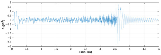 The acceleration curve in the Z direction of the terminal is obtained by the inertial sensor, as shown in Figure 5. As can be seen from the figure, the vibration with an amplitude of less than 1 in the Z direction at the beginning of the motion quickly converges to less than 0.5 with the motion. In the stop deceleration phase, the end amplitude is about three times that of the starting segment due to the abrupt change in acceleration, and a significant damping oscillation is generated.